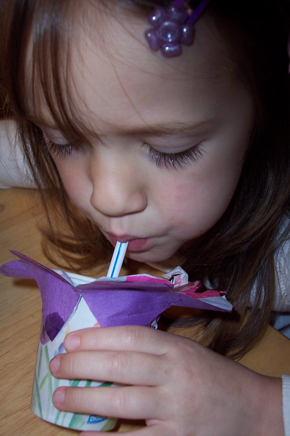 3) Bend the petals around the cup. It’s a flower! Fill the cup with juice (nectar).