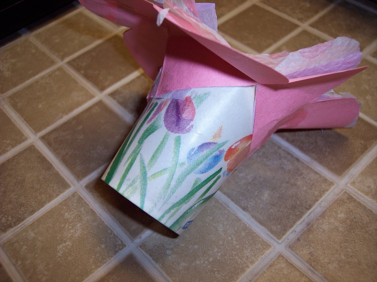 2) Slide the flower over the cup and tape the flaps to the cup.