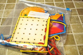 Lacing cards are a favorite. If you don’t want to buy them, they are easy to make with a cereal box and hole punch! You can also place the cards on a piece of paper and make a dot-to-dot!