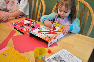 I turned the girls loose and allowed them to design their own Valentine’s Day boxes! These are simple to make but kept them entertained for a while!