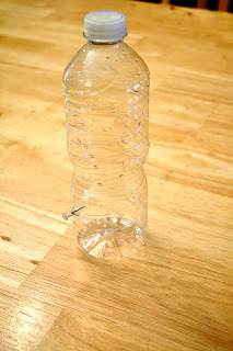 1) Poke holes with the thumbtack a few inches up from the bottom of the bottle. I made a line of holes around the bottle.