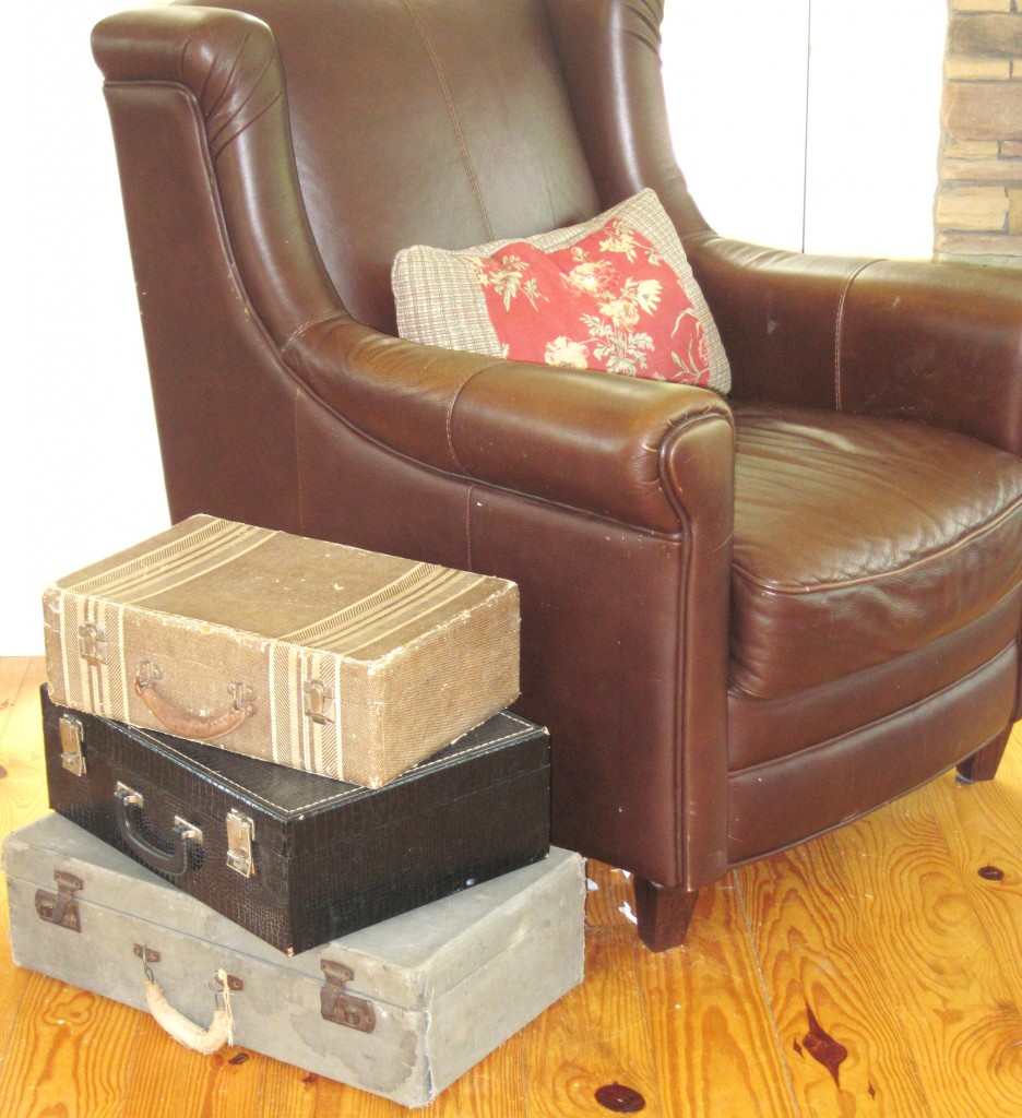 - Decorative suitcases, stacked, make an optional end table and can 2nd as storage.